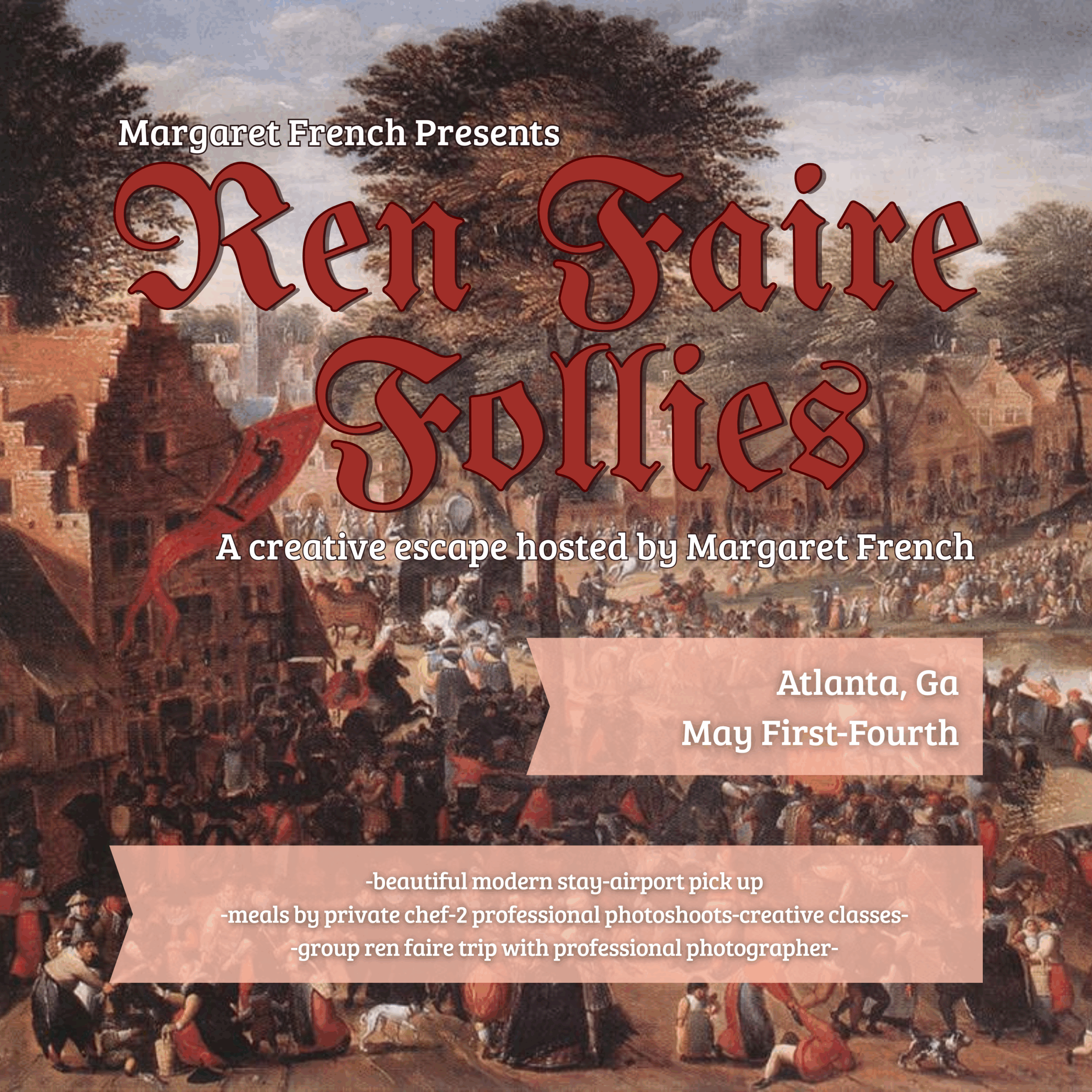 Ren Faire Follies A Creative Escape by Margaret French This might be the most “me” escape I’ve ever done, we’re going to the ren faire! We will vote on a group costume (participation is encouraged but never required) and then on the Sunday of Ren Faire Follies the whole crew is going to the Georgia […]